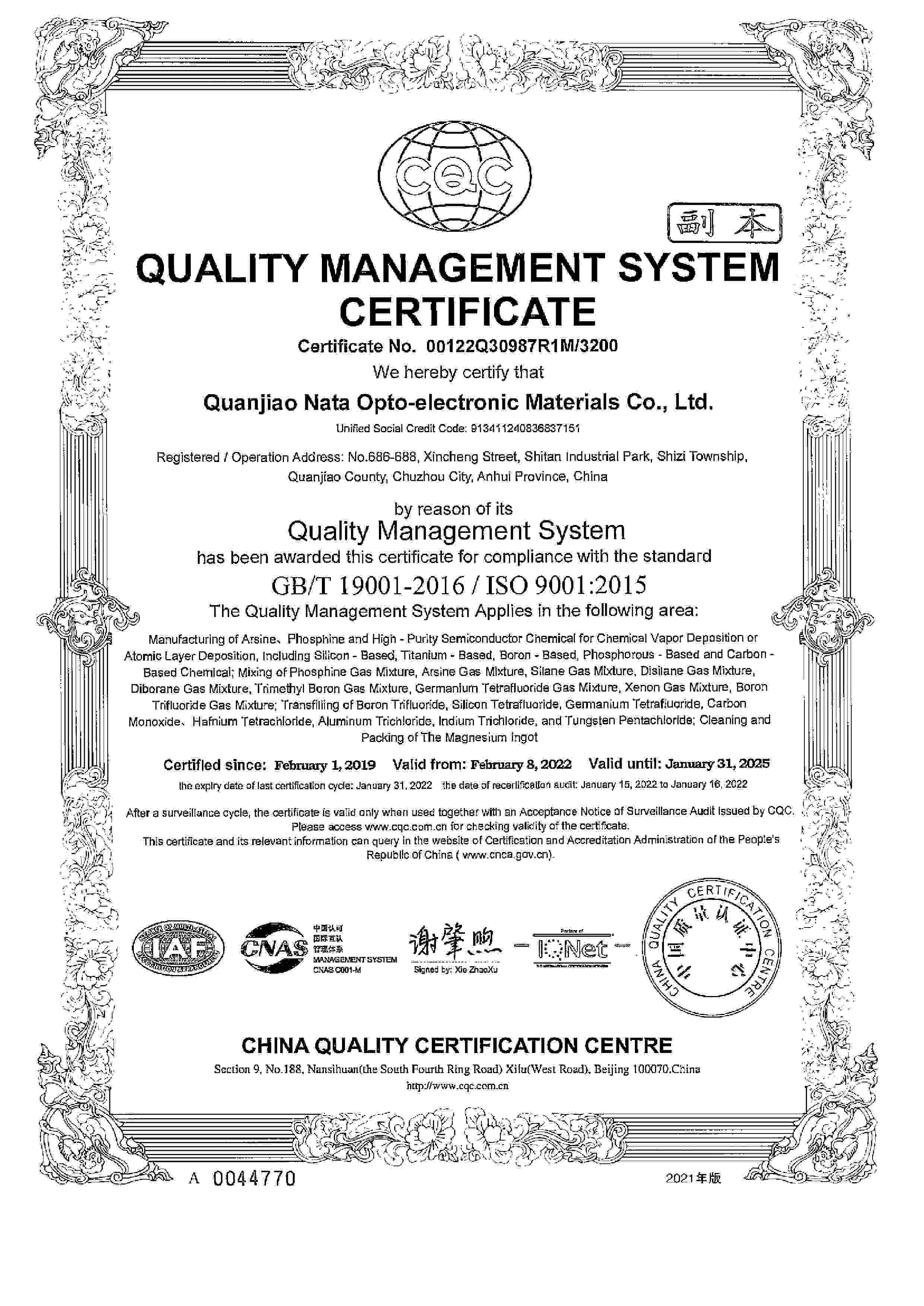 ISO14001證書
